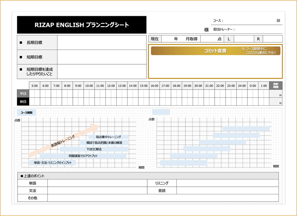 ※英会話コース・TOEICコースの実施期間はそれぞれ3ヶ月間・2ヶ月間になります。結果には個人差があり、効果を保証するものではありません。体験者のスコアアップ量は確率的に可能な範囲です。