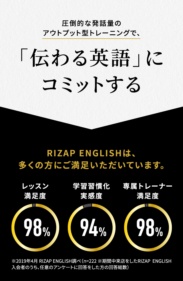 ※2019年4月 RIZAP ENGLISH調べ(n=222※期間中来店をしたRIZAP ENGLISH入会者のうち、任意のアンケートに回答をした方の回答総数)